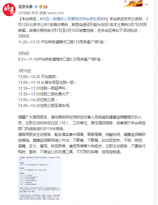 面对疫情的挑战,我们要保持高度警惕,不能有丝毫松懈,我们也要相信政府和医疗部门的能力,相信我们一定能够战胜疫情,在这个过程中,我们需要加强个人防护和社区防控,加强医疗资源的建设和管理,加强宣传教育和经济保障,共同应对疫情的挑战,北京丰台区已经采取了积极的措施来应对疫情的挑战,我们相信在大家的共同努力下,一定能够战胜疫情,迎来更加美好的未来。